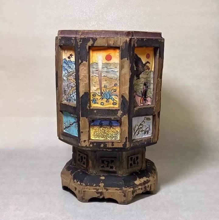 八面古董老木雕供果台、木质风化物