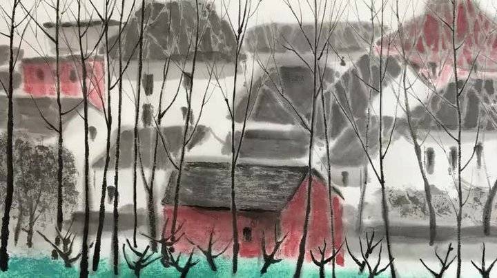 近处小岛上,矮树为桑树,现在植桑养蚕的农户已经很罕见。小红屋是看塘人的临时住所,网围着的水域以及桑田用来养鸭和鹅,远处为渔村。