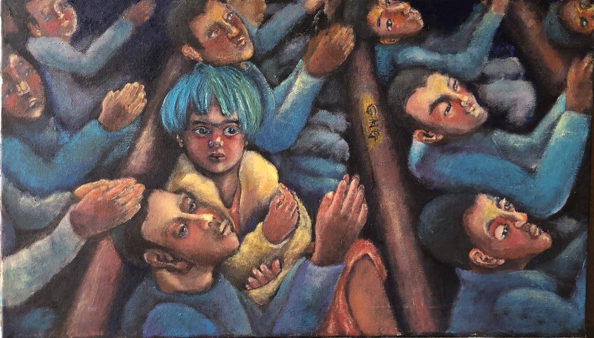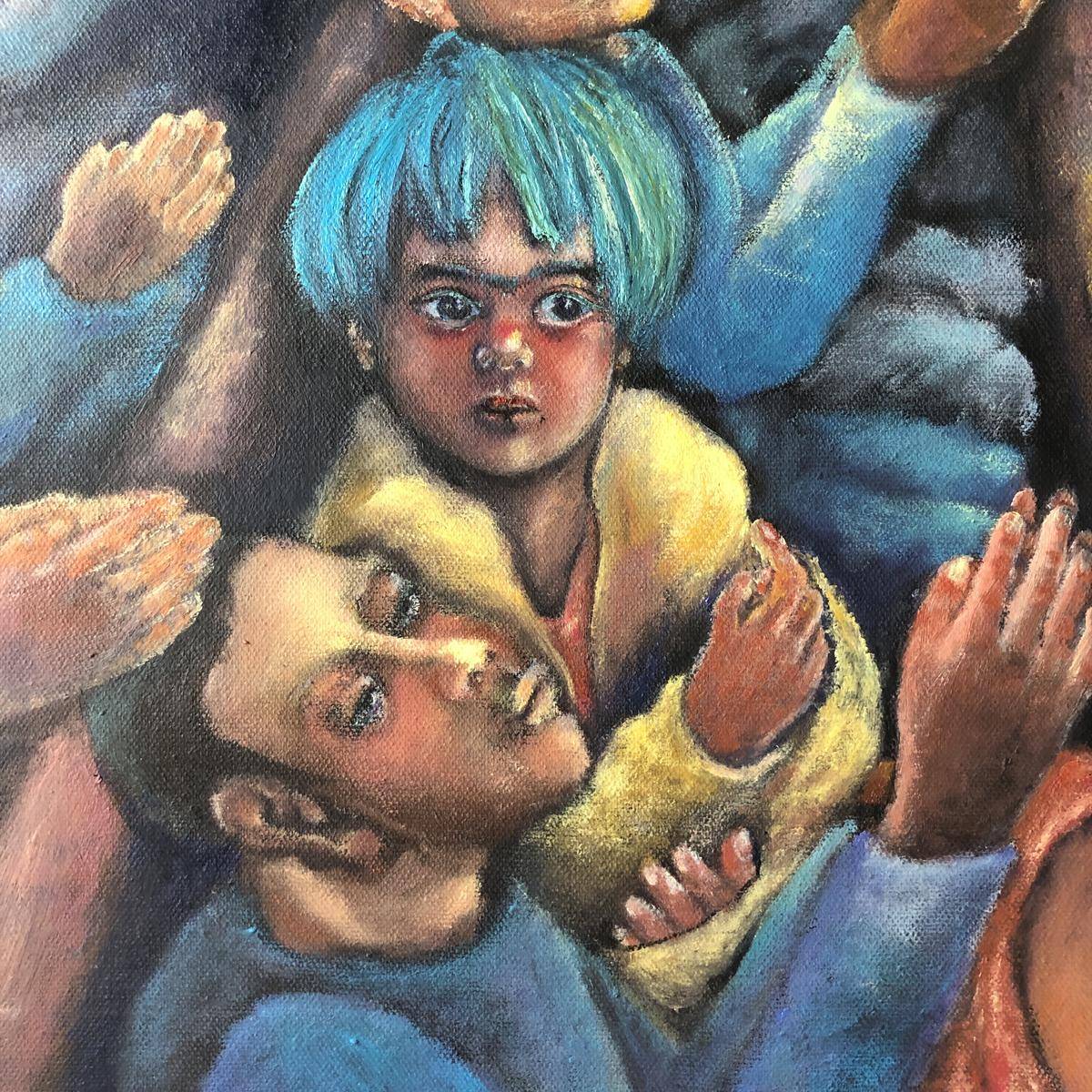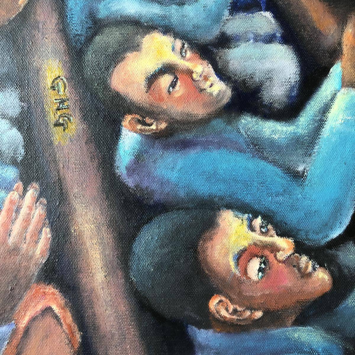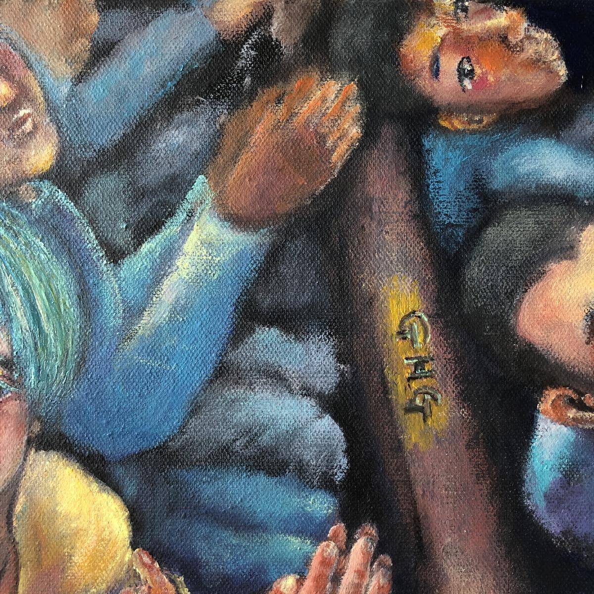 我和你们不一样系列。这幅画画得很慢,因为一场大病让我有一段时间生活无法自理,脊柱的强烈疼痛将画画变成了一件非常艰难的事情。我每天只能站立一会会儿,坐着或弯腰,都会痛得打激凌。满心的热爱在此时是淋漓尽致地表现出来,似乎有一种使命感促使我不能放下画笔