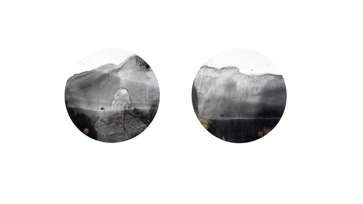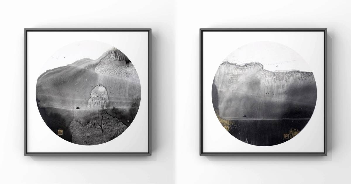 系列组合画,两幅作品组合成,每幅作品有衬装裱卡纸,无装裱外框,装裱卡纸尺寸44cm✖️44cm,圆内直径34cm,图二与图五为装裱效果图,仅供参考。