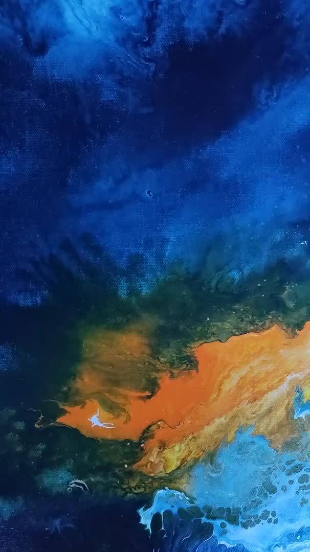 在技法方面,创作者熟练地运用了颜料的特性,可能采用了泼洒、涂抹、刮擦等多种手法,使得画面呈现出丰富的纹理和层次感。颜料的厚薄变化、色彩的交融过渡都处理得恰到好处,显示出创作者扎实的绘画功底和对材料的熟练驾驭能力 。