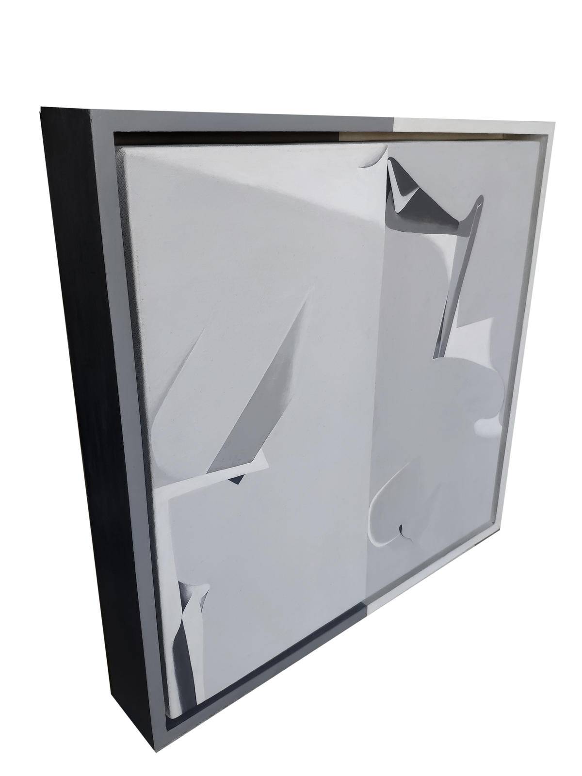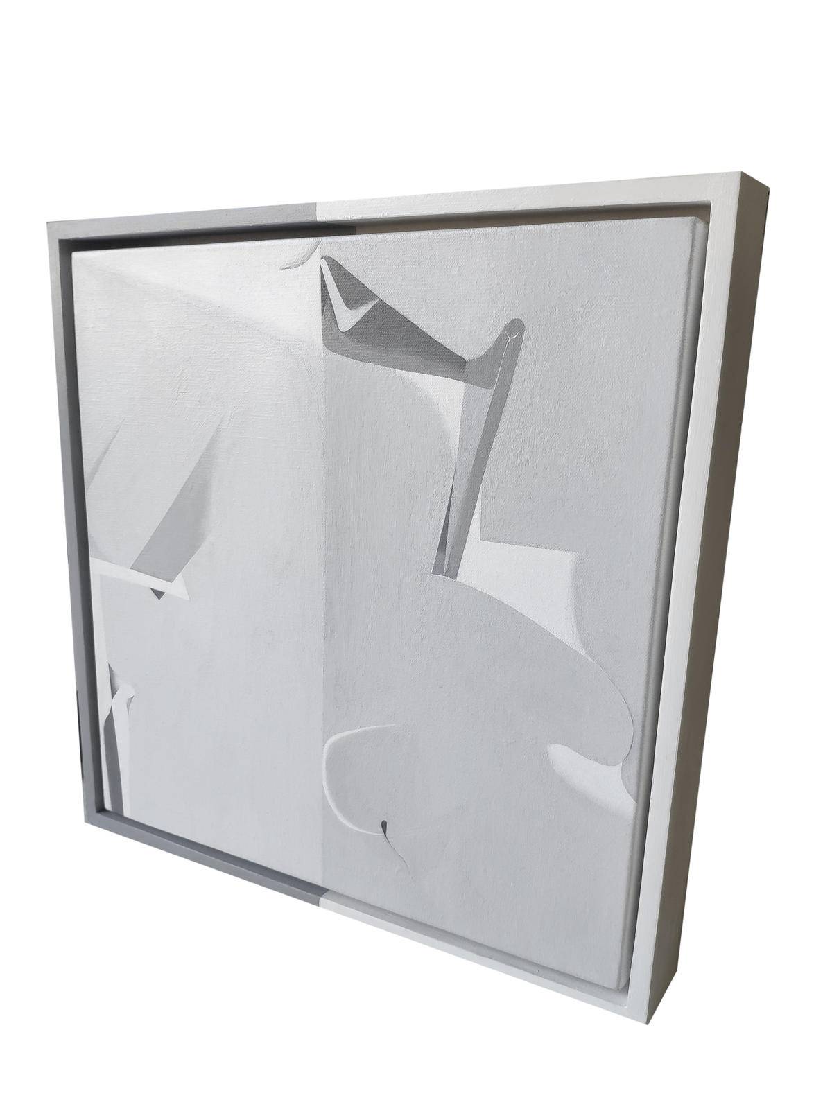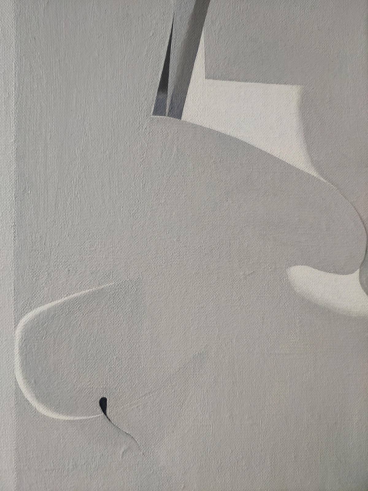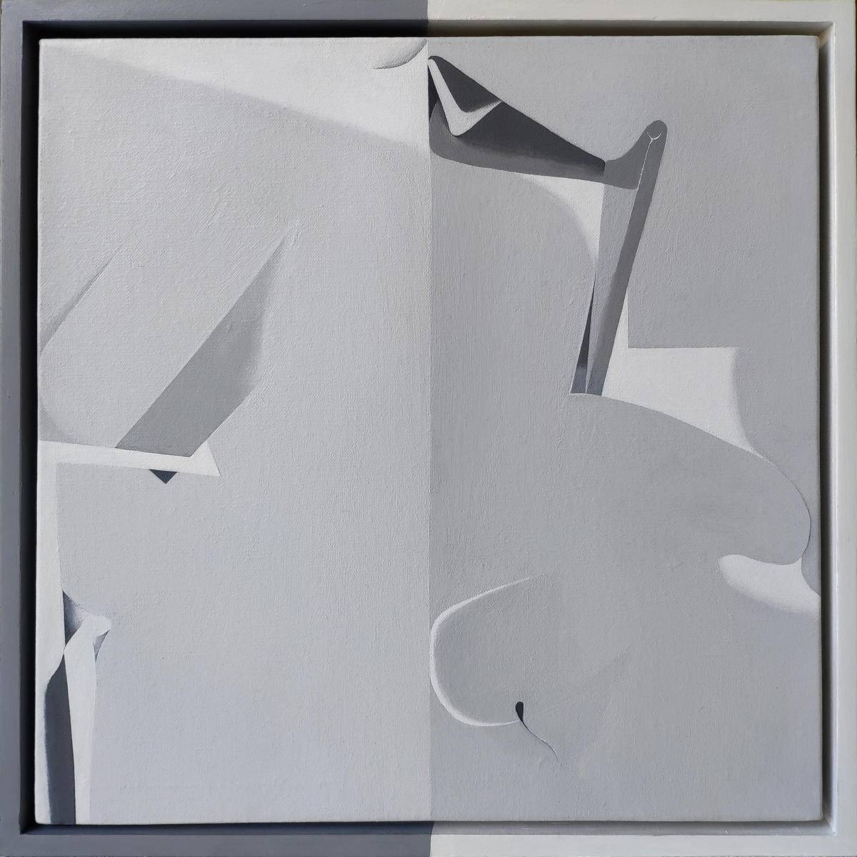 The art works of this series use black and white and gray tones. When there is no rich color, the spatial relationship of the picture is emphasized. A sharp line cuts the frames apart, like two strangers starting to perform together on a stage. Sometimes they step into each other's territory, sometimes not, politely touching upon each other’s space, near or far. Most of the time the relationship is out of balance because there is a little chance of meeting the same people and interacting in the same way again. I like to stretch out the time in the painting. The change of color, the speed and the tempo of the line and the change of shape all hide the time.