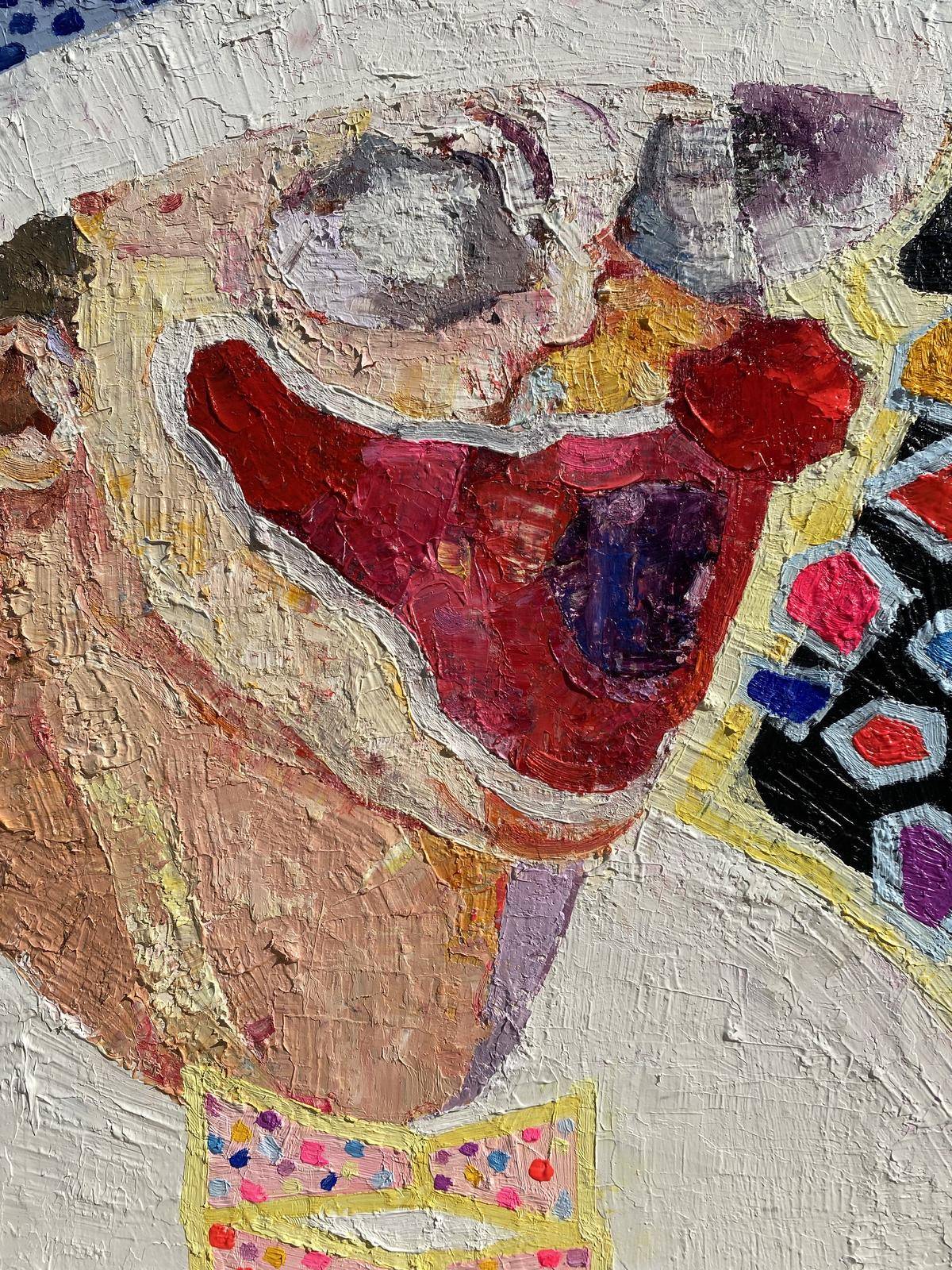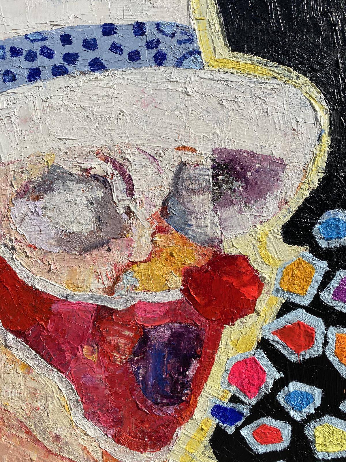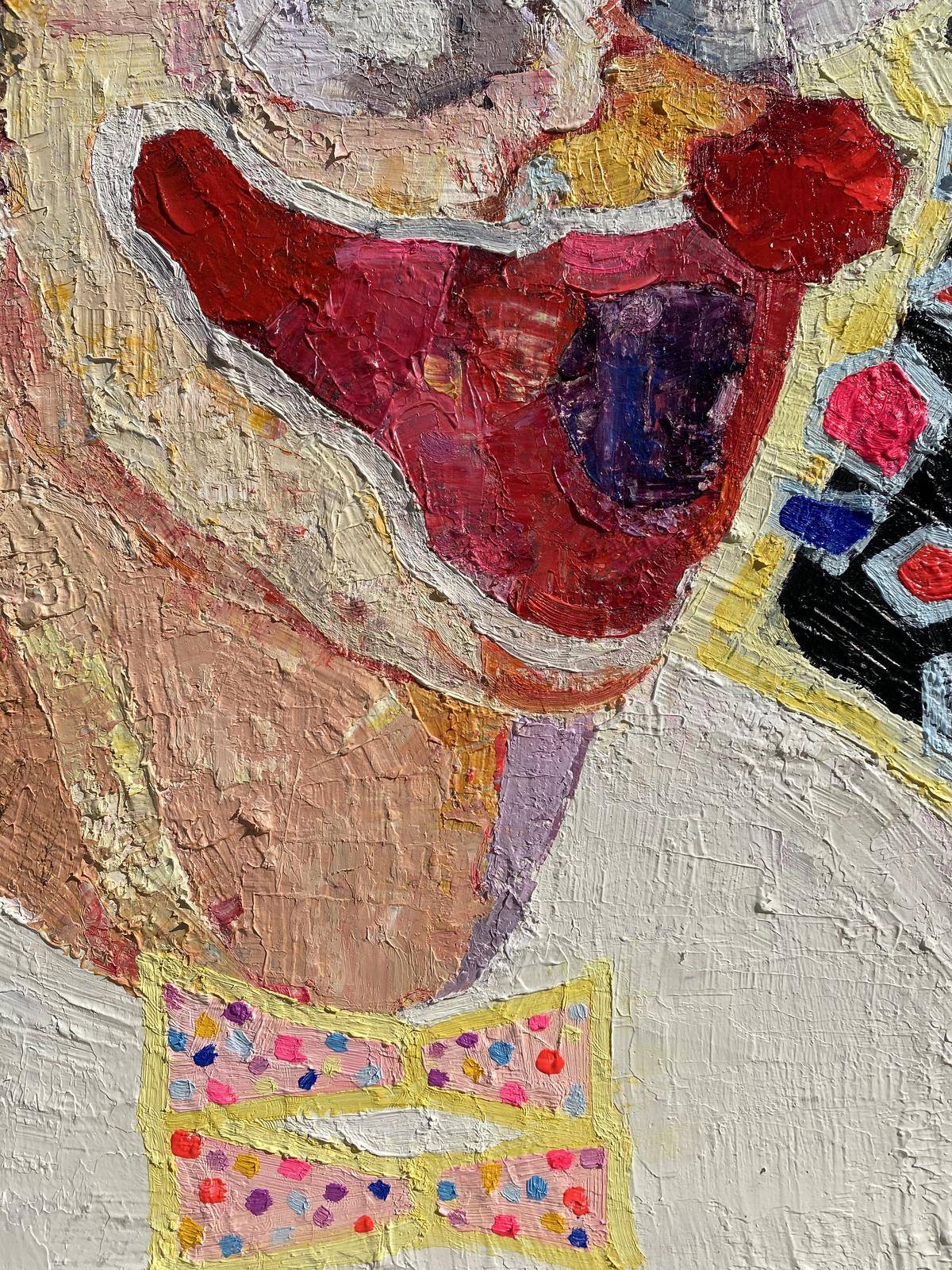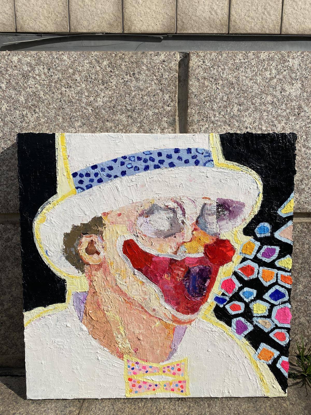 《吹泡泡的小丑先生》这幅作品是小丑先生系列作品之一,童年的回忆总有吹起泡泡的故事,在阳光下,泡泡有各种各样的颜色,也许是回忆也许是向往无忧无虑的日子,希望吹着彩色泡泡的小丑先生能给大家带来快乐的回忆