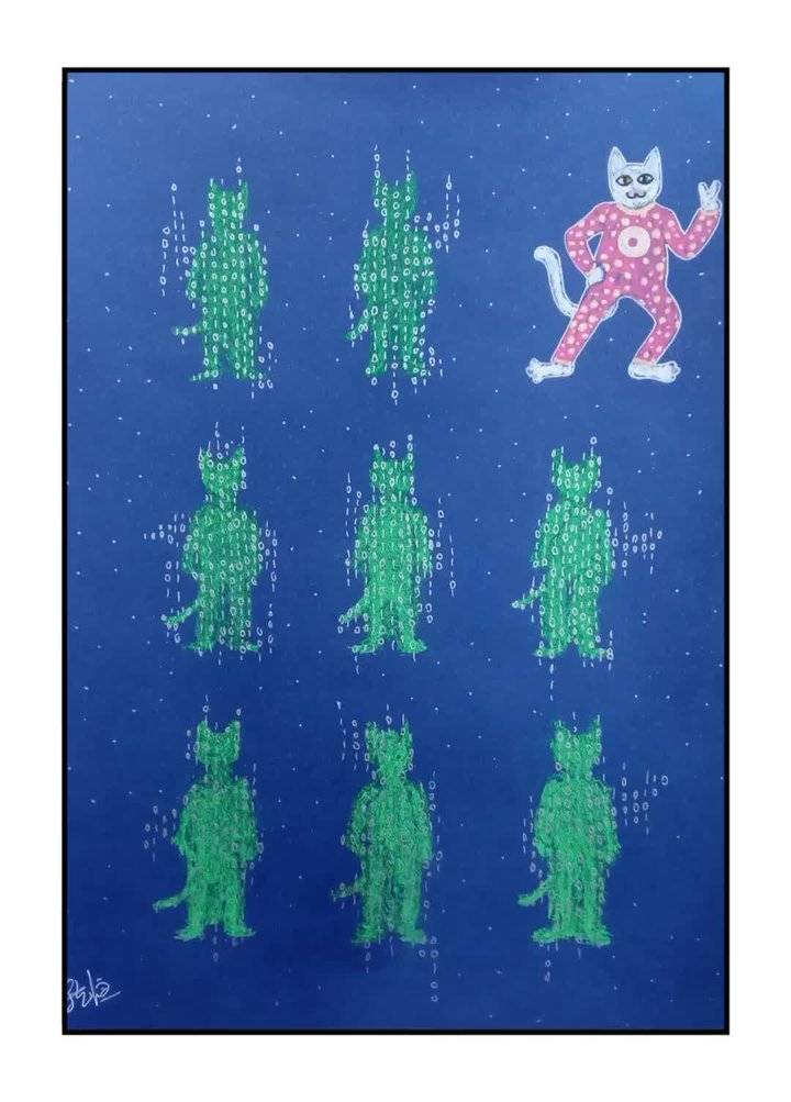 《蓝调猫》系列为本人原创作品,可以说是《新笔墨研究》系列的延伸,在上一系列的成果上,我利用《蓝调猫》来主要研究三个问题。