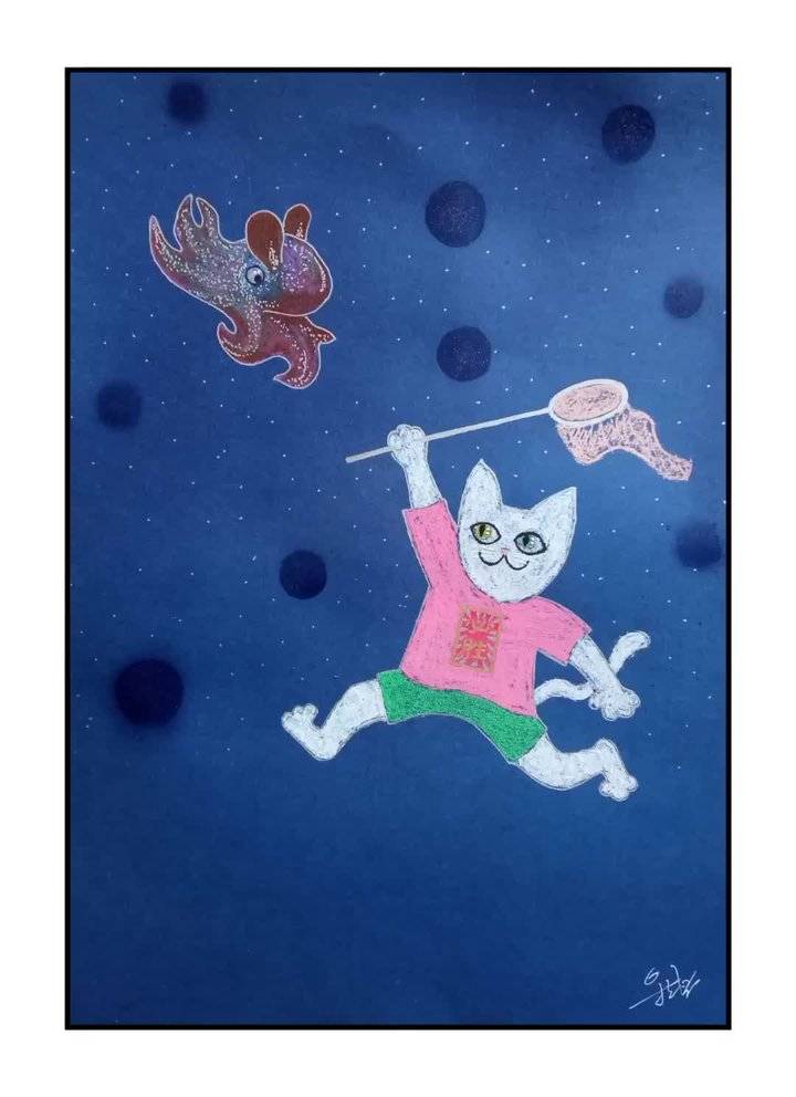 抛去原有的颜色理论知识,继续利用国画笔墨的概念,提升颜色和笔触的音乐性。所以《蓝调猫》并不止画面中的表面意义,更多的是我在用颜色与笔触探索音乐性,希望这一点有赏心者能看出来,那我会很开心,因为在这方面我花了很多力气。