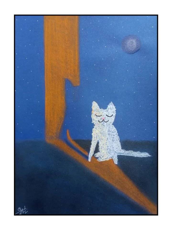 抛去原有的颜色理论知识,继续利用国画笔墨的概念,提升颜色和笔触的音乐性。所以《蓝调猫》并不止画面中的表面意义,更多的是我在用颜色与笔触探索音乐性,希望这一点有赏心者能看出来,那我会很开心,因为在这方面我花了很多力气。