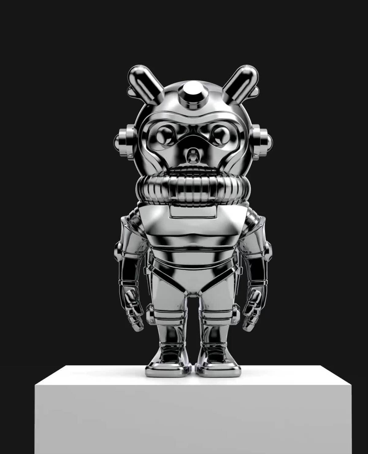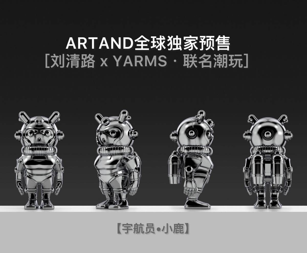 此次YARMS工作室特别选择了国内新锐画家刘清路的“宇航员小鹿”形象作为主题,使用了YARMS工作室惯用且擅长的雕塑灵感潮玩设计技法与切线设计元素,与刘清路共同设计并推出了联名潮玩雕塑形象。
