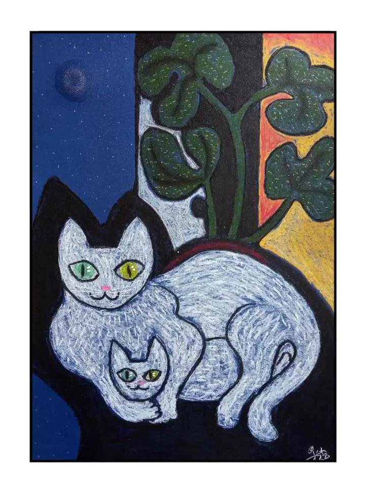 抛去原有的颜色理论知识,继续利用国画笔墨的概念,提升颜色和笔触的音乐性。所以《蓝调猫》并不止画面中的表面意义,更多的是我在用颜色与笔触探索音乐性,希望这一点有赏心者能看出来,那我会很开心,因为在这方面我花了很多力气。