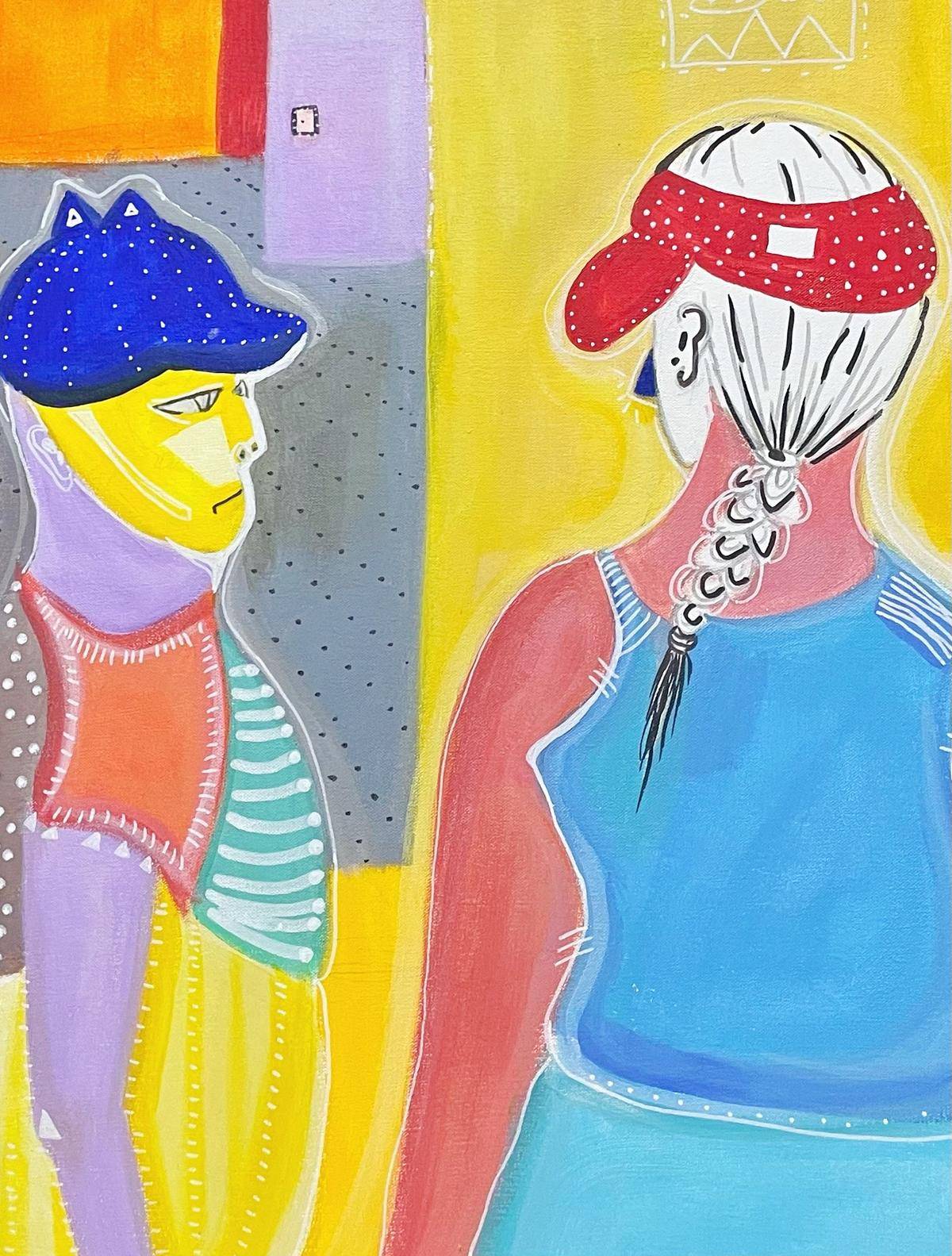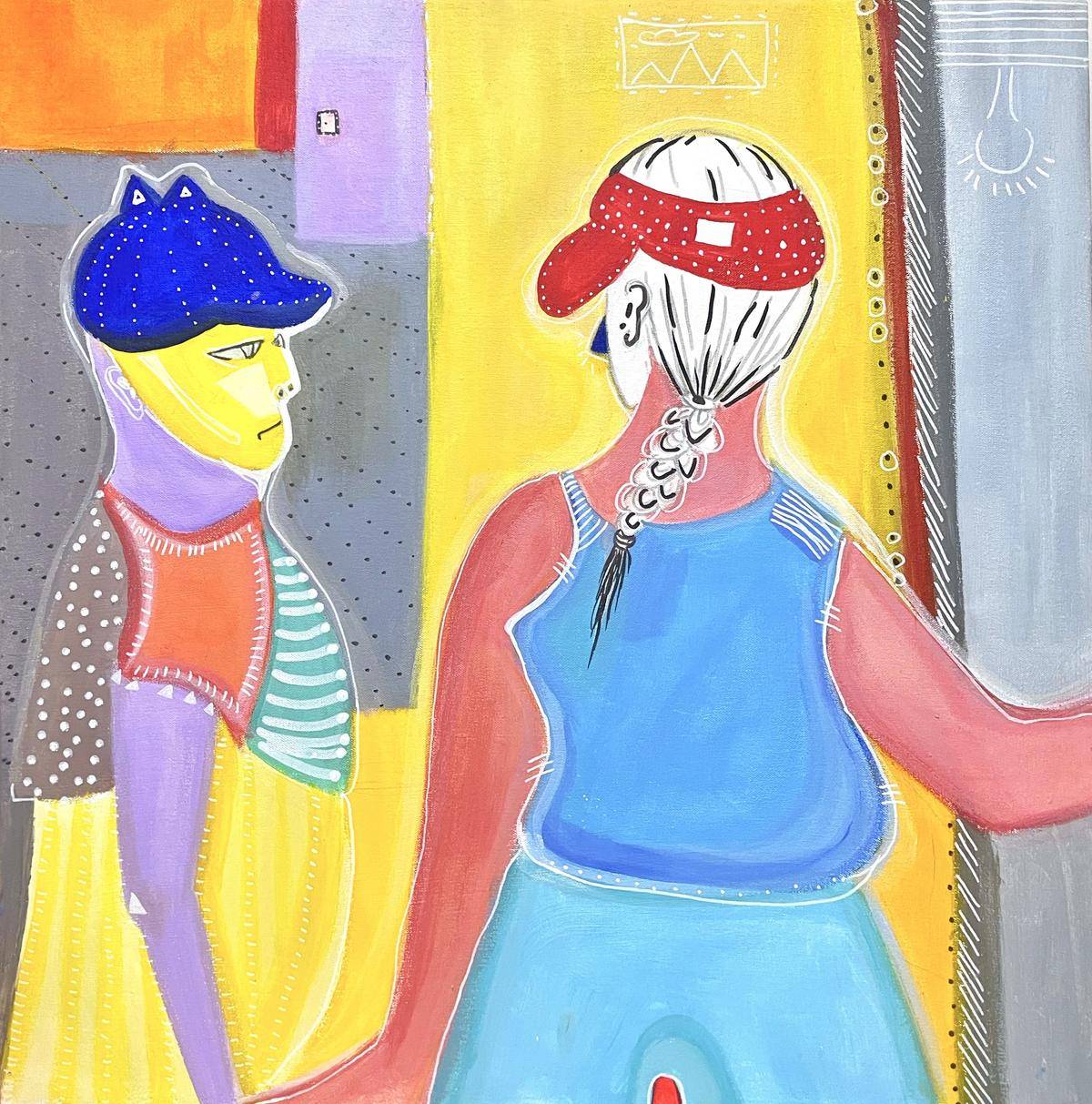 关于人物的描绘与抽象浓缩其实在我的系列作品中比较少见。在这幅画面中失焦的双眼和不带任何情绪的表达给予画面强烈的不安感与叙述性。