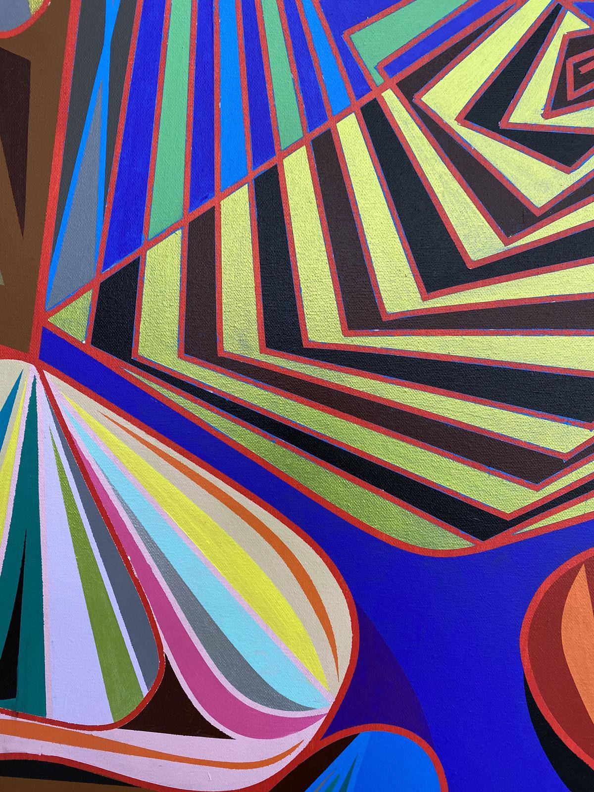 通过线这种最简单的绘画元素,来展现事物之间的关系,试图让理性和感性并存,在冷抽象、内张力和情绪表达、视觉冲击之间,求得平衡。