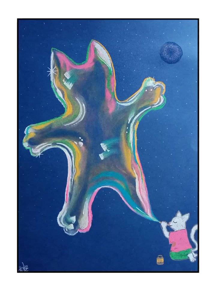 综合材料 / 卡纸 色粉 墨水 铅笔 固色液 进口丙烯颜料 金粉或银粉 艺术家原创IP / 42×30cm / 2022
