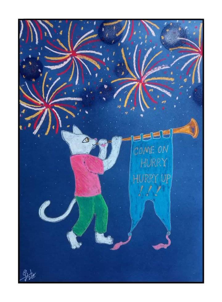 抛去原有的颜色理论知识,继续利用国画笔墨的概念,提升颜色和笔触的音乐性。所以《蓝调猫》并不止画面中的表面意义,更多的是我在用颜色与笔触探索音乐性,希望这一点有赏心者能看出来,那我会很开心,因为在这方面我花了很多力气。