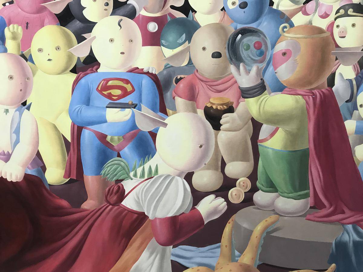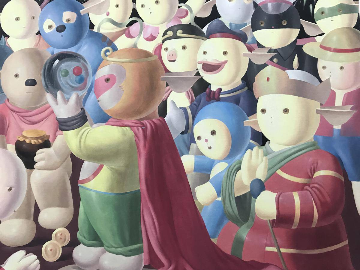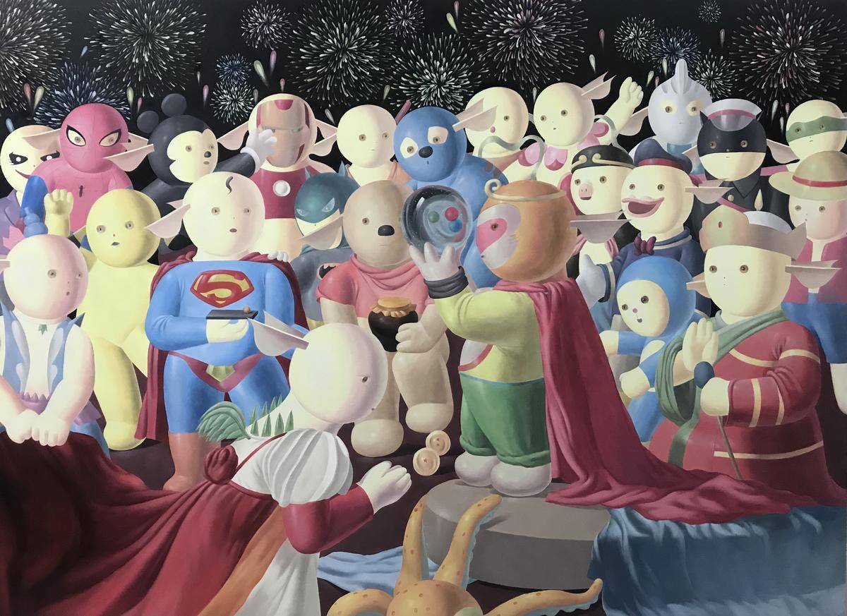 作品中兔子打扮成各个海外皆知的动漫形象,表达的也是面具之下,众生并无区别,不一样的只是外在皮囊。