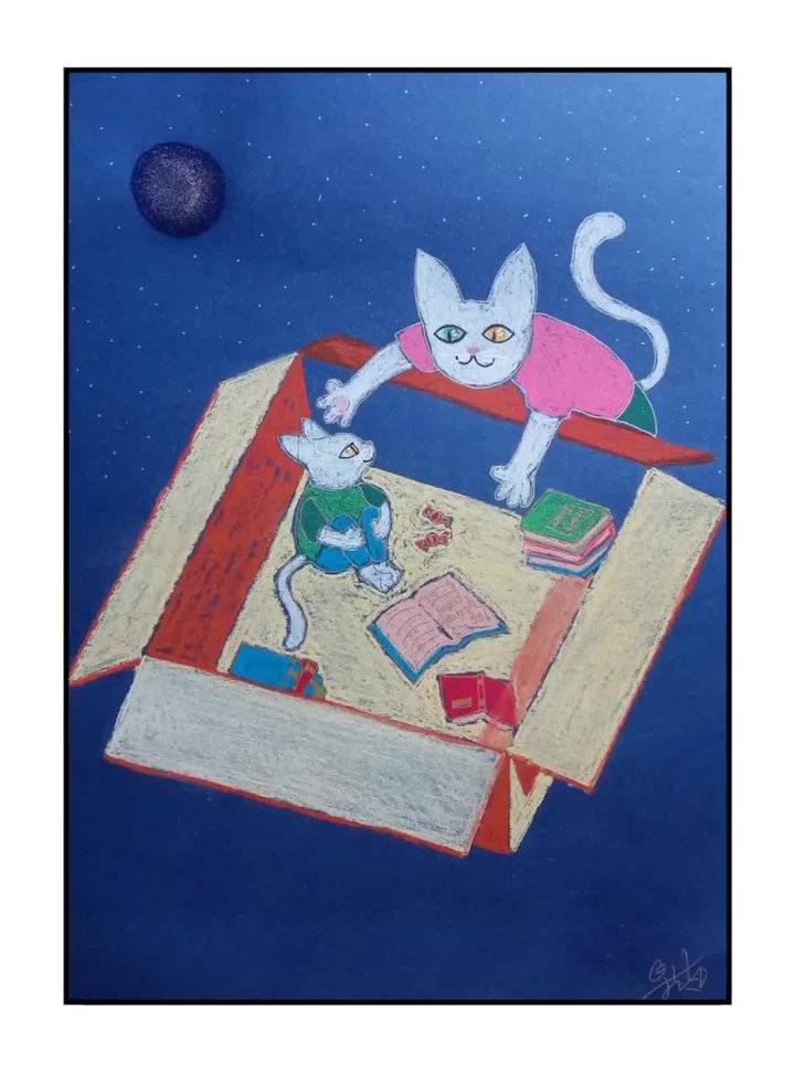 抛去原有的颜色理论知识,继续利用国画笔墨的概念,提升颜色和笔触的音乐性。所以《蓝调猫》并不止画面中的表面意义,更多的是我在用颜色与笔触探索音乐性,希望这一点有赏心者能看出来,那我会很开心,因为在这方面我花了很多力气。