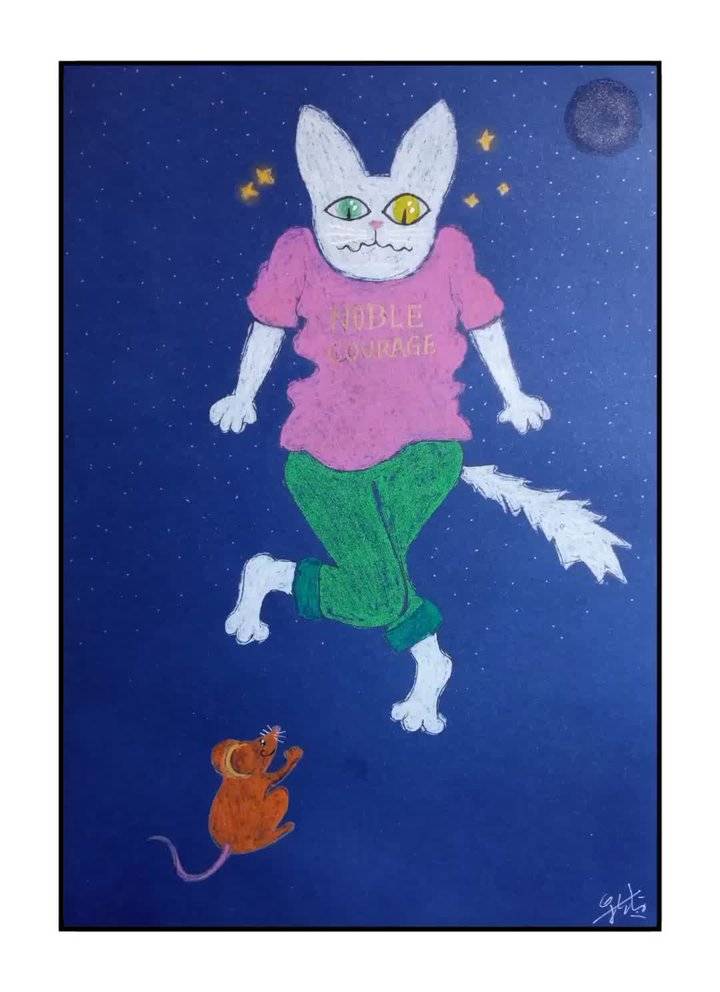抛去原有的颜色理论知识,继续利用国画笔墨的概念,提升颜色和笔触的音乐性。所以《蓝调猫》并不止画面中的表面意义,更多的是我在用颜色与笔触探索音乐性,希望这一点有赏心者能看出来,那我会很开心,因为在这方面我花了很多力气。