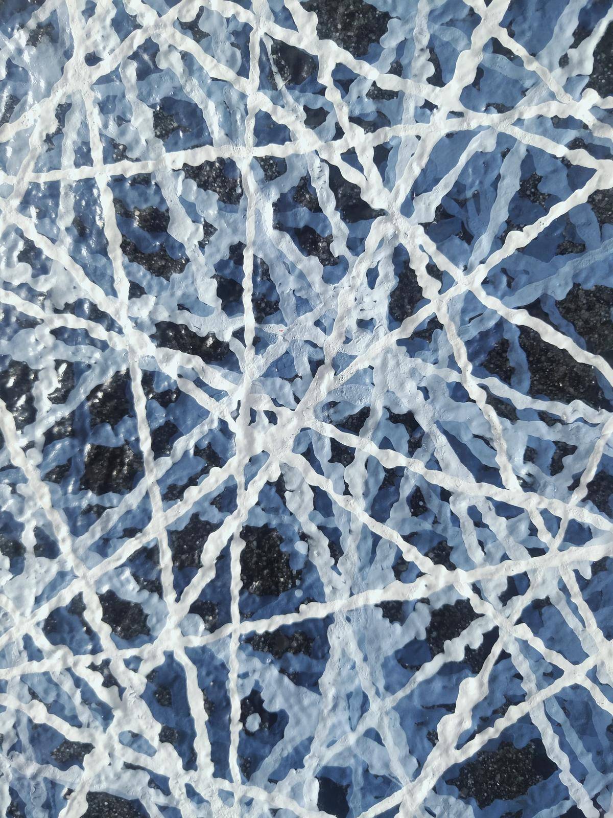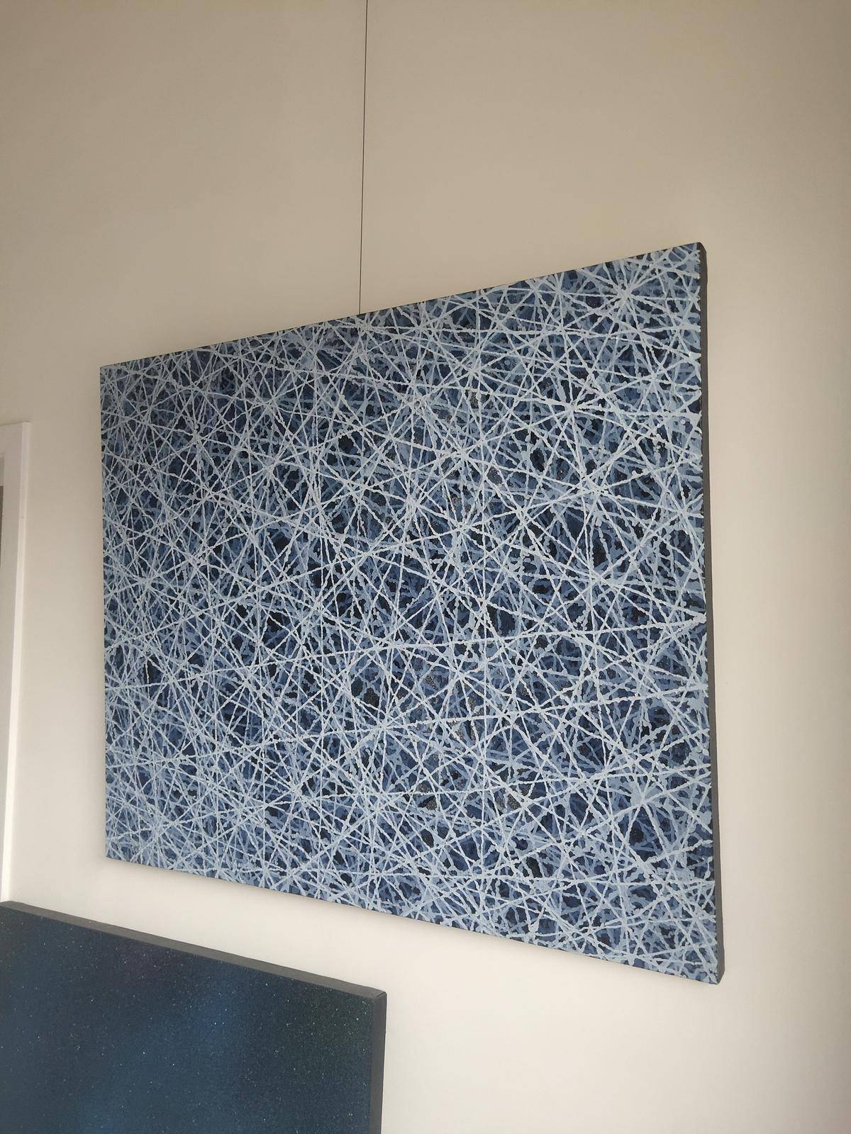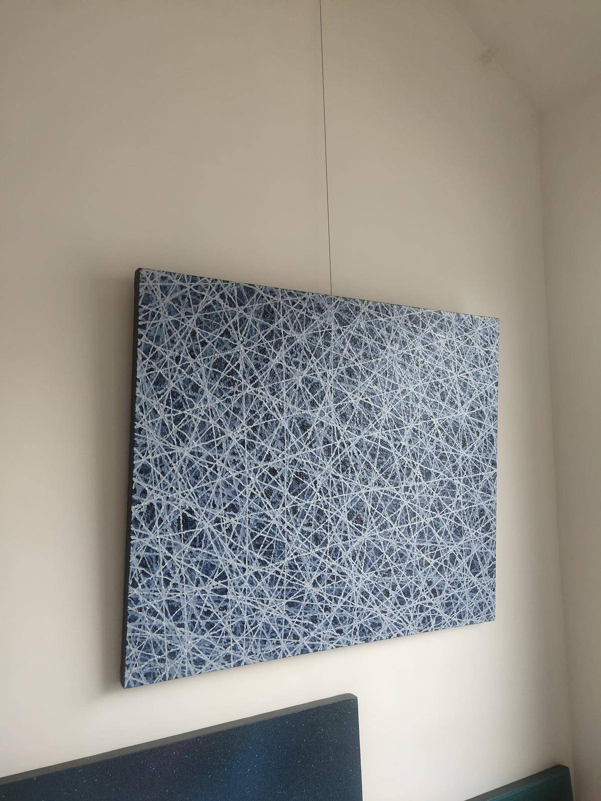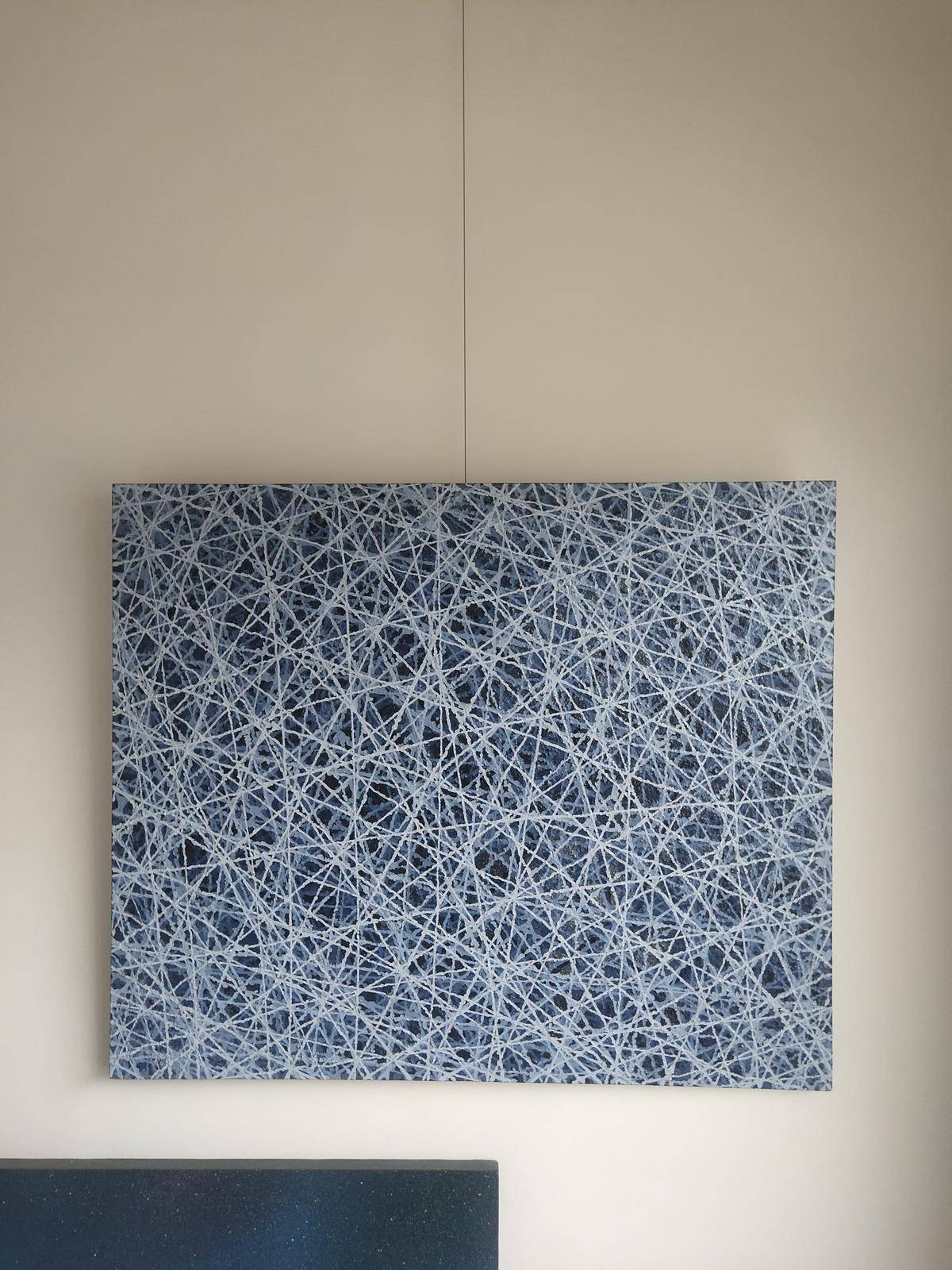 运用艺术的核心(点 线)和西方艺术的情性色彩融为一体,构建了一个看似单纯,实则包罗万象的抽象画面。只有“空”,才会有精神的安宁,才会有灵魂的通道,才会有令人遐想的无限空间;也只有“空”才有可能从物质的束缚中解脱出来,成为精神的自由者。