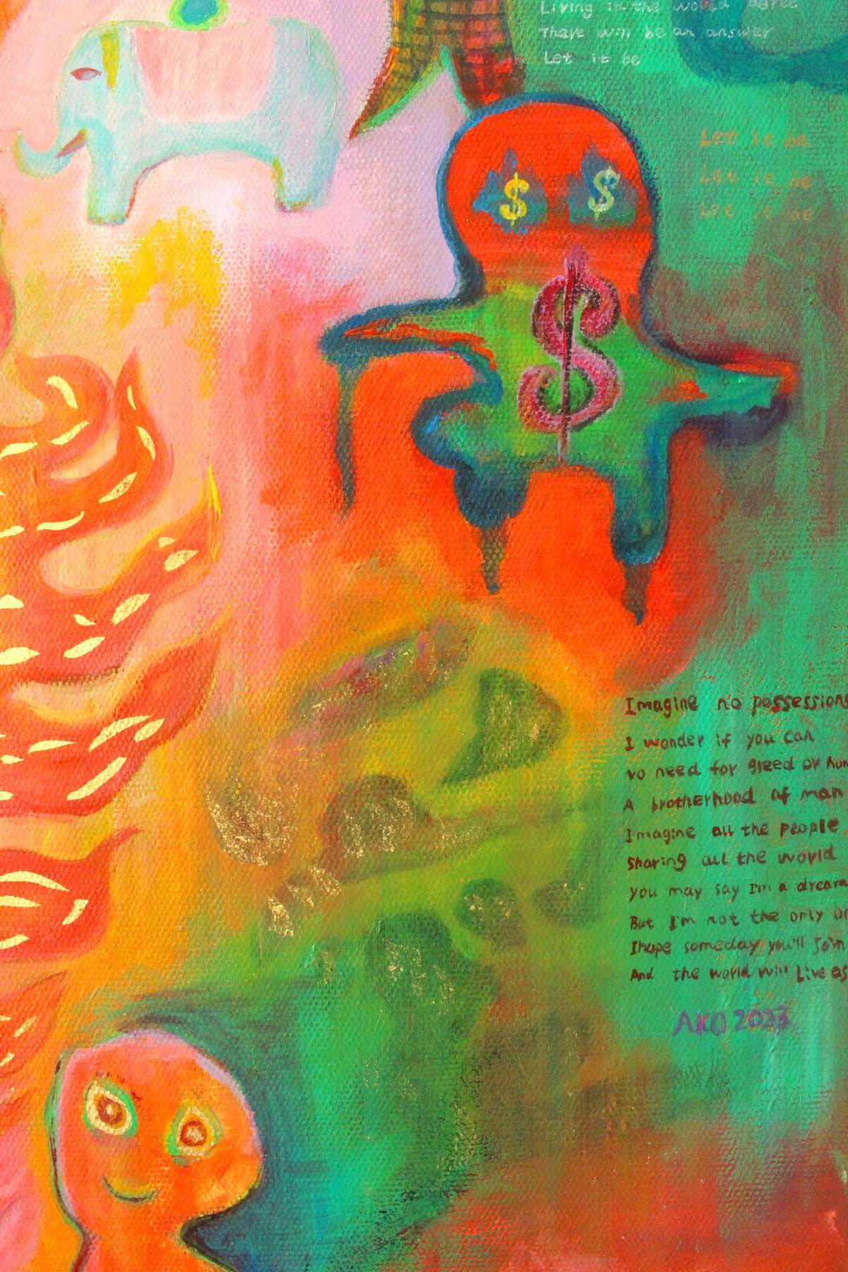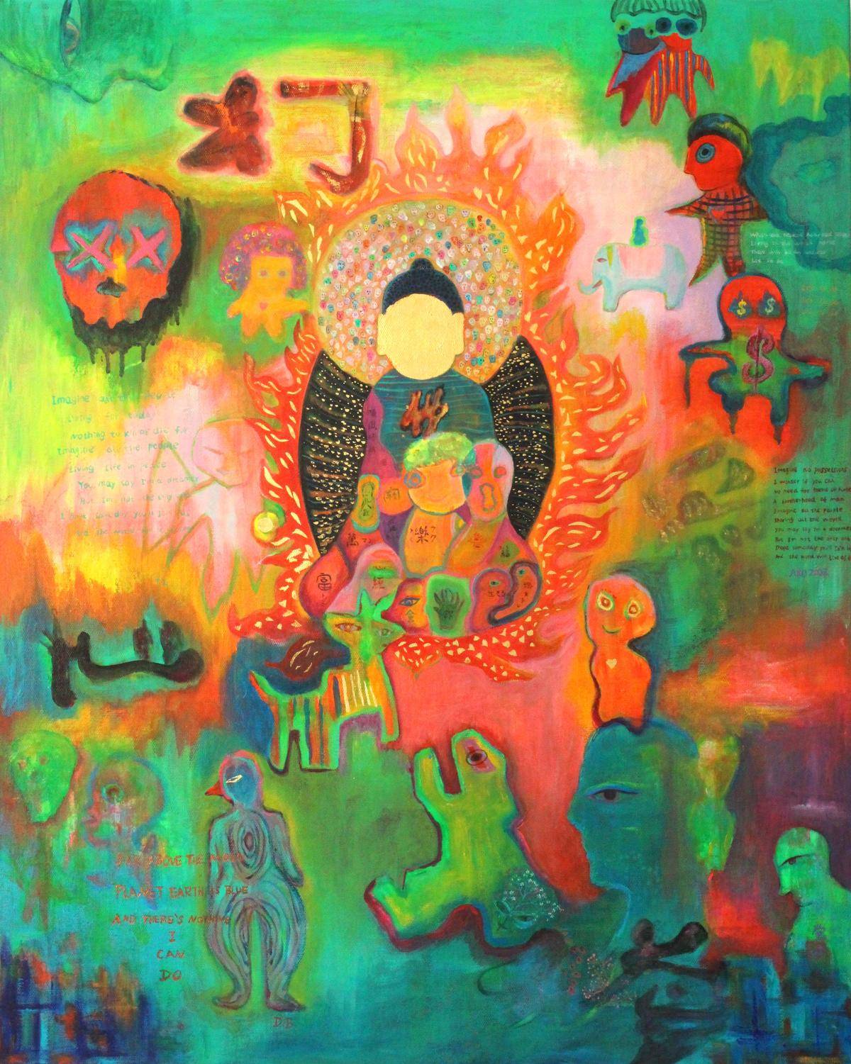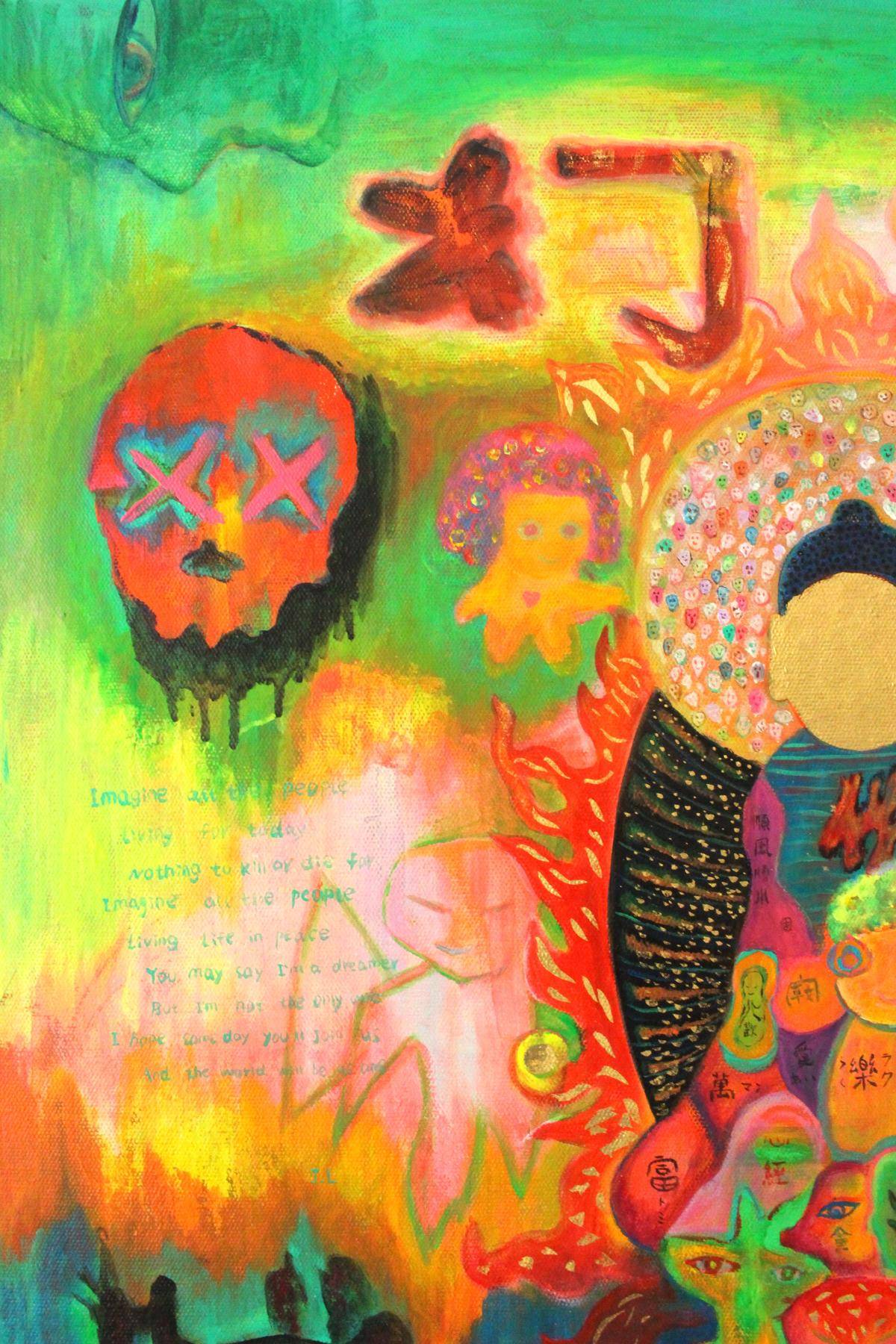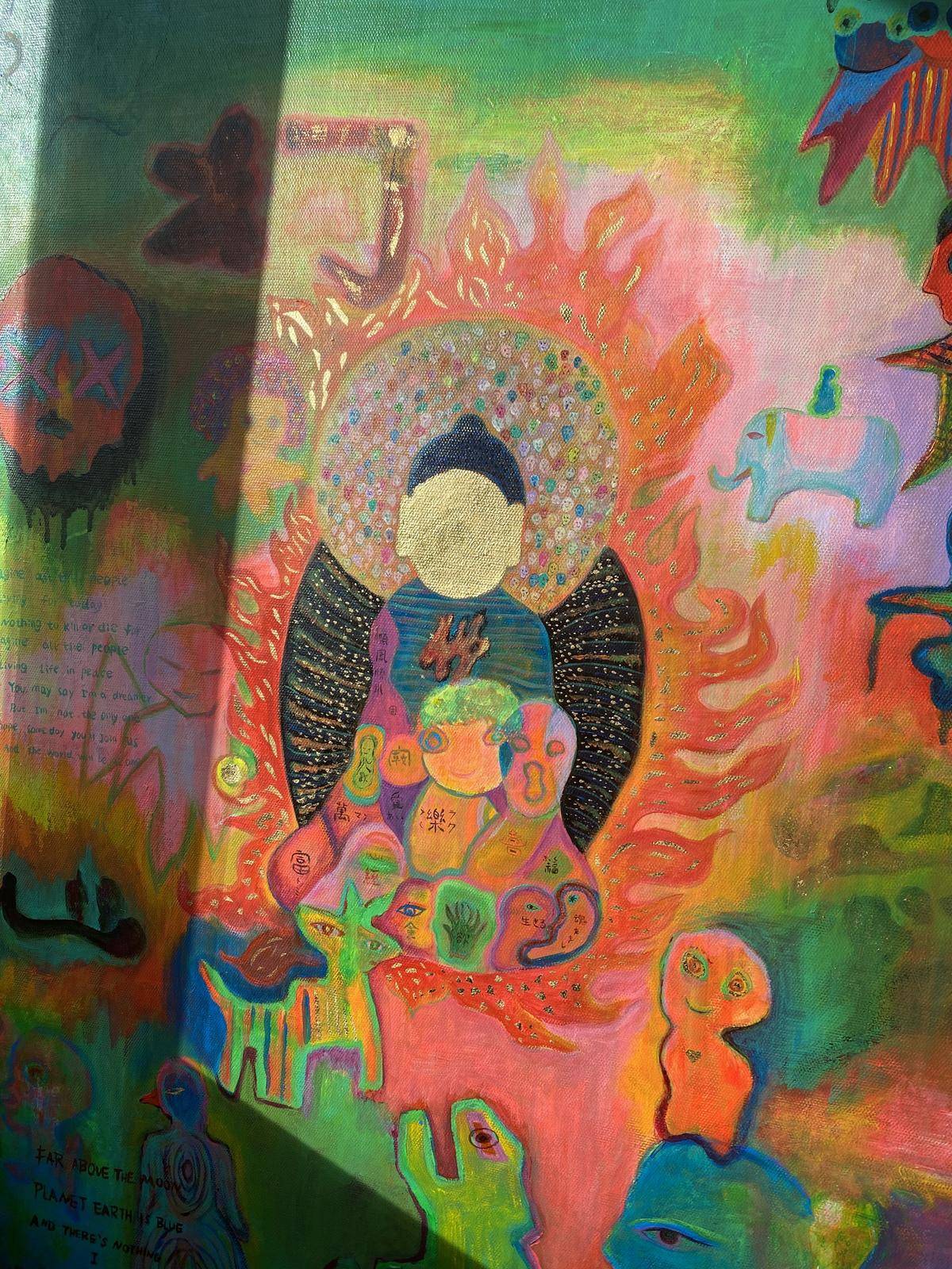 丙烯(布面丙烯) / 雨露麻,法国进口贝碧欧丙烯颜料,纯金箔 / 100×80cm / 2023
