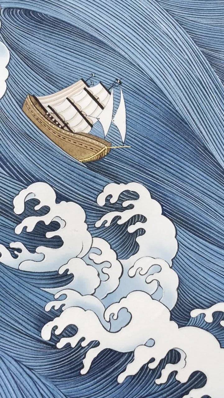 标签 国画海浪船黑色工笔