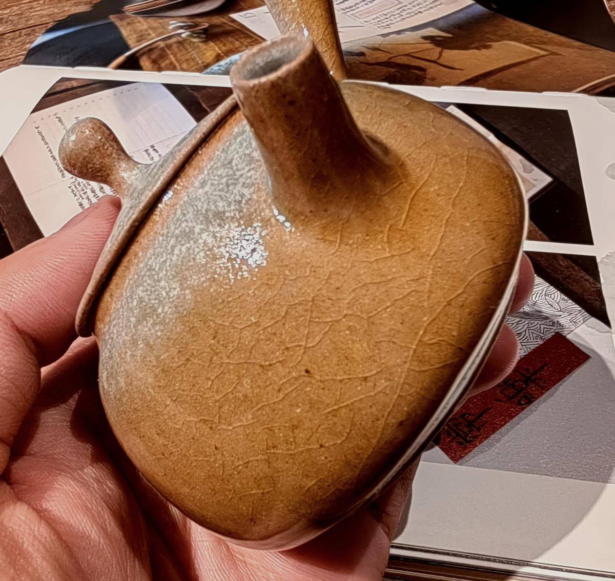结晶渐变,釉面开片,壶内薄薄白釉,壶盖忘记上釉了,效果很协调,不减对她的喜欢😍。