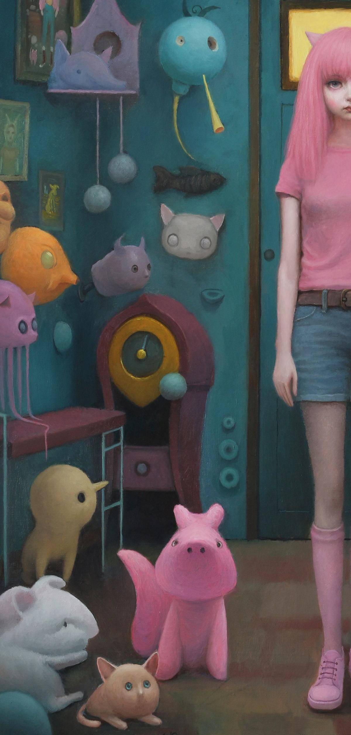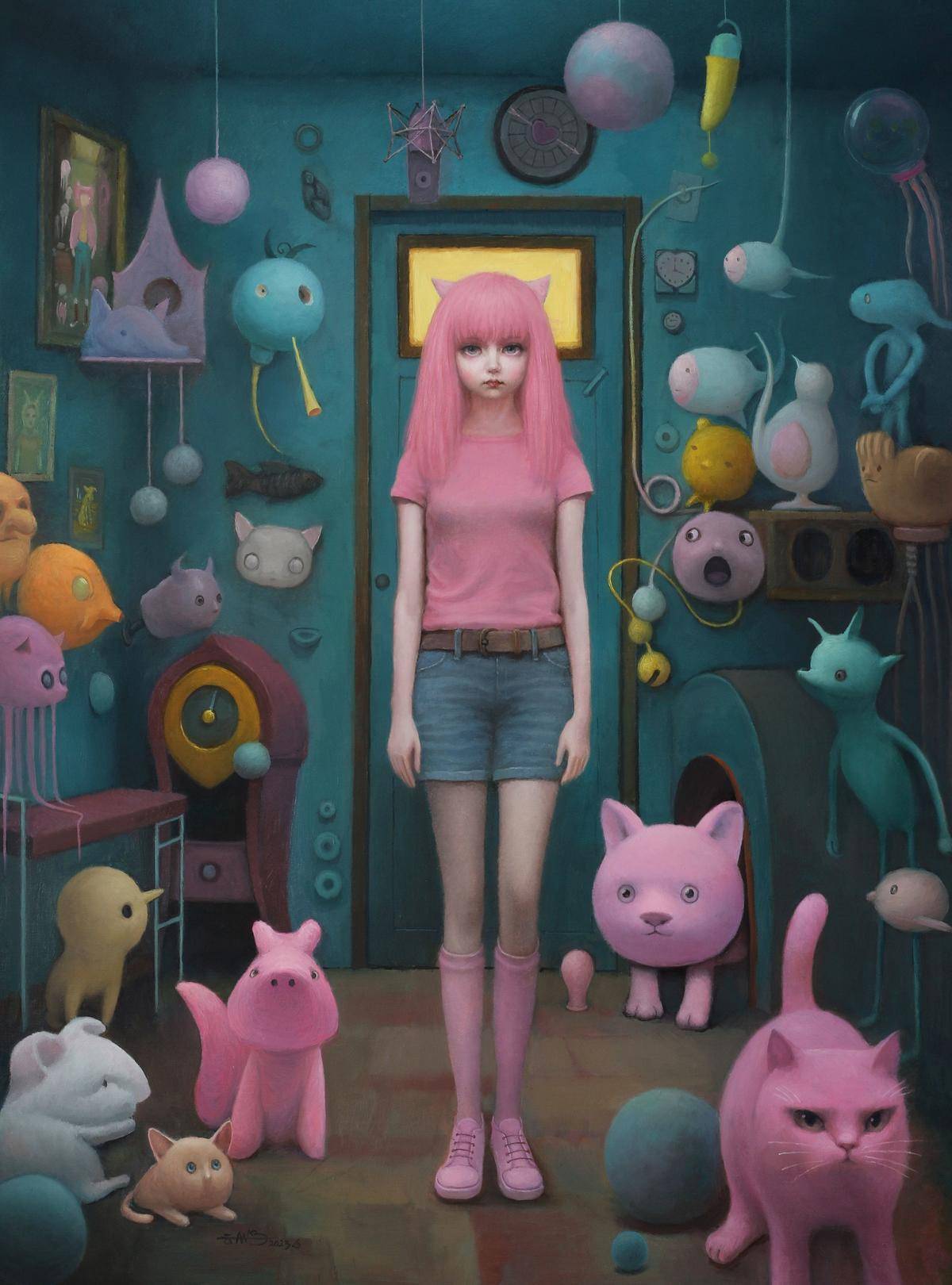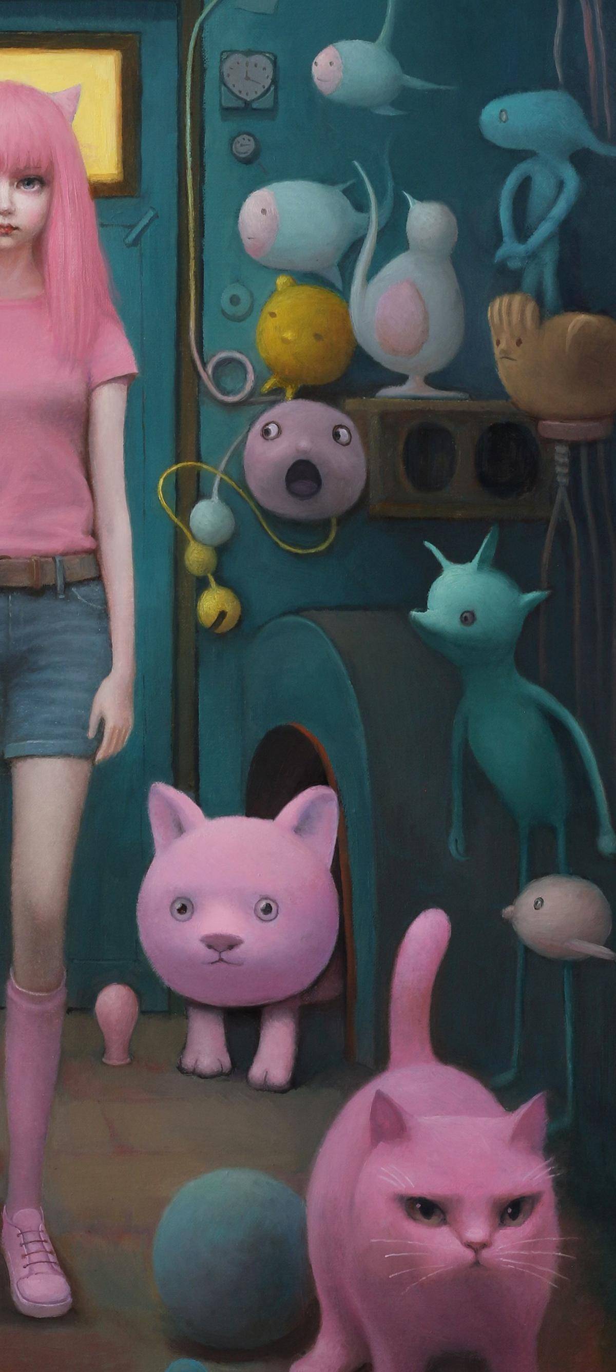 #油画 #超现实绘画 #波普艺术 #潮流 #女孩 #猫 #密室 #当代艺术