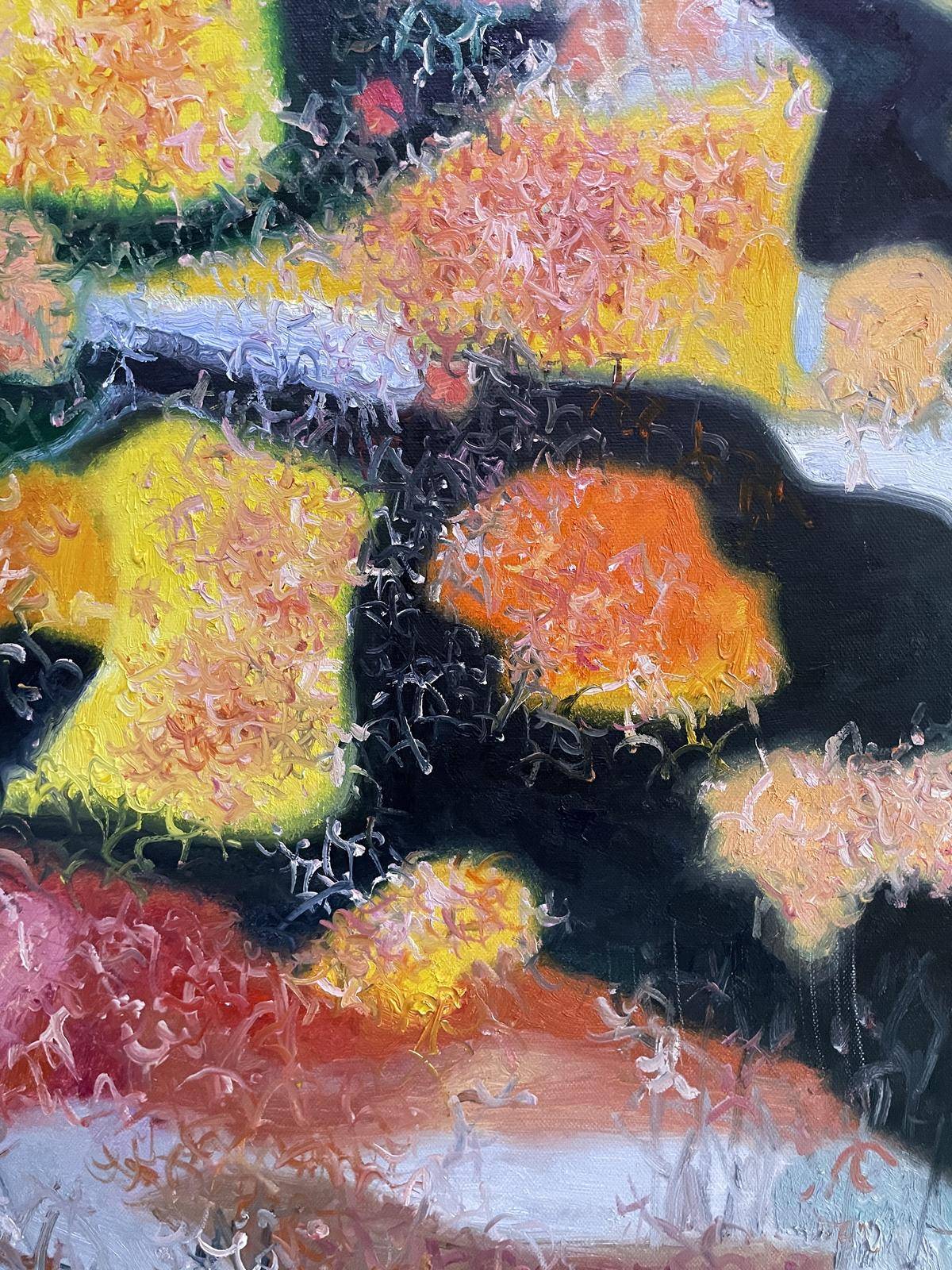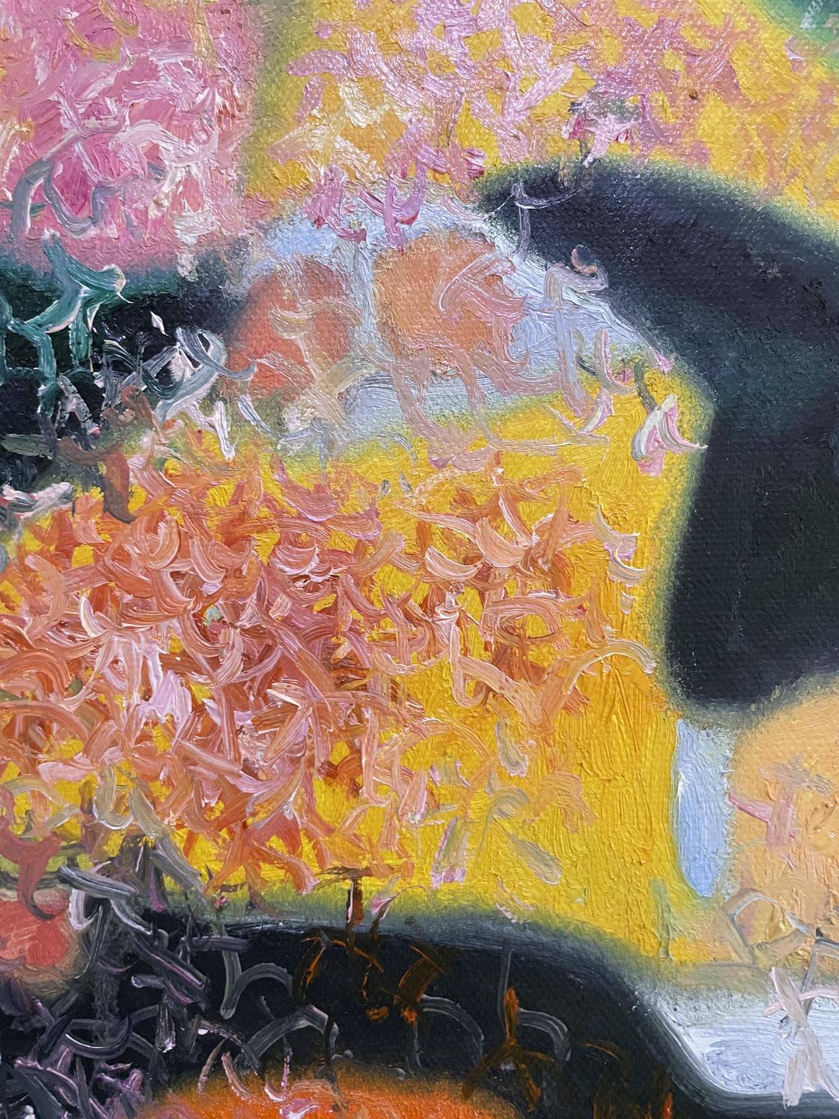 山花烂漫,娇艳丽色如梦般鲜丽,似真似幻,画时想起以前那个时候的采花玩戏。花儿有梦,梦里有花。然其香气扑鼻的感觉很是浓郁,眼里有其美,走入了花的梦幻世界,想起美丽的女子采花赏景,一股清新气息扑面而来,显其娇艳嫩丽之美!