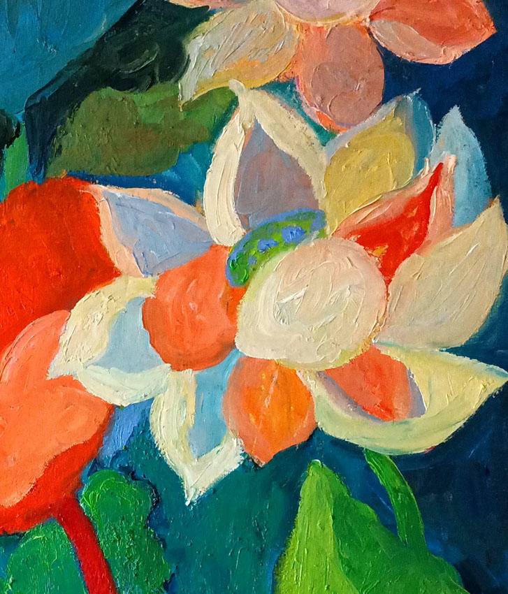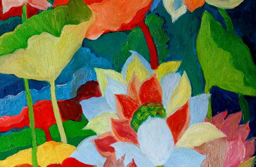 标签 油画当代花卉荷花印象+装饰奇花异卉