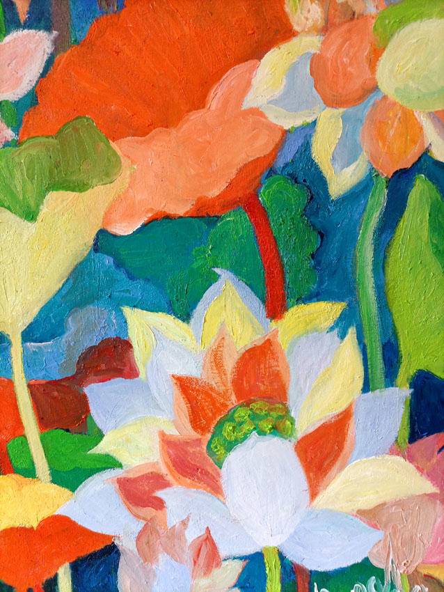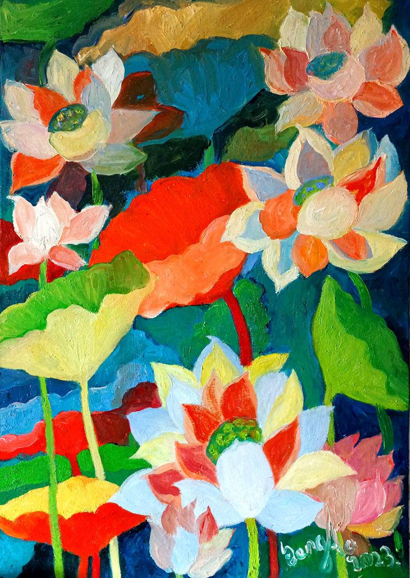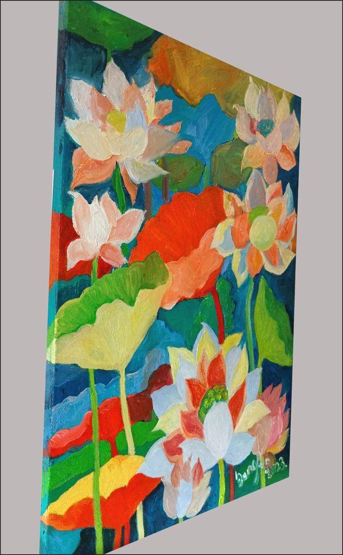 《夏荷》油画系列,画了十几年,有一定的市场。是个家装的软配配饰理念的主题。