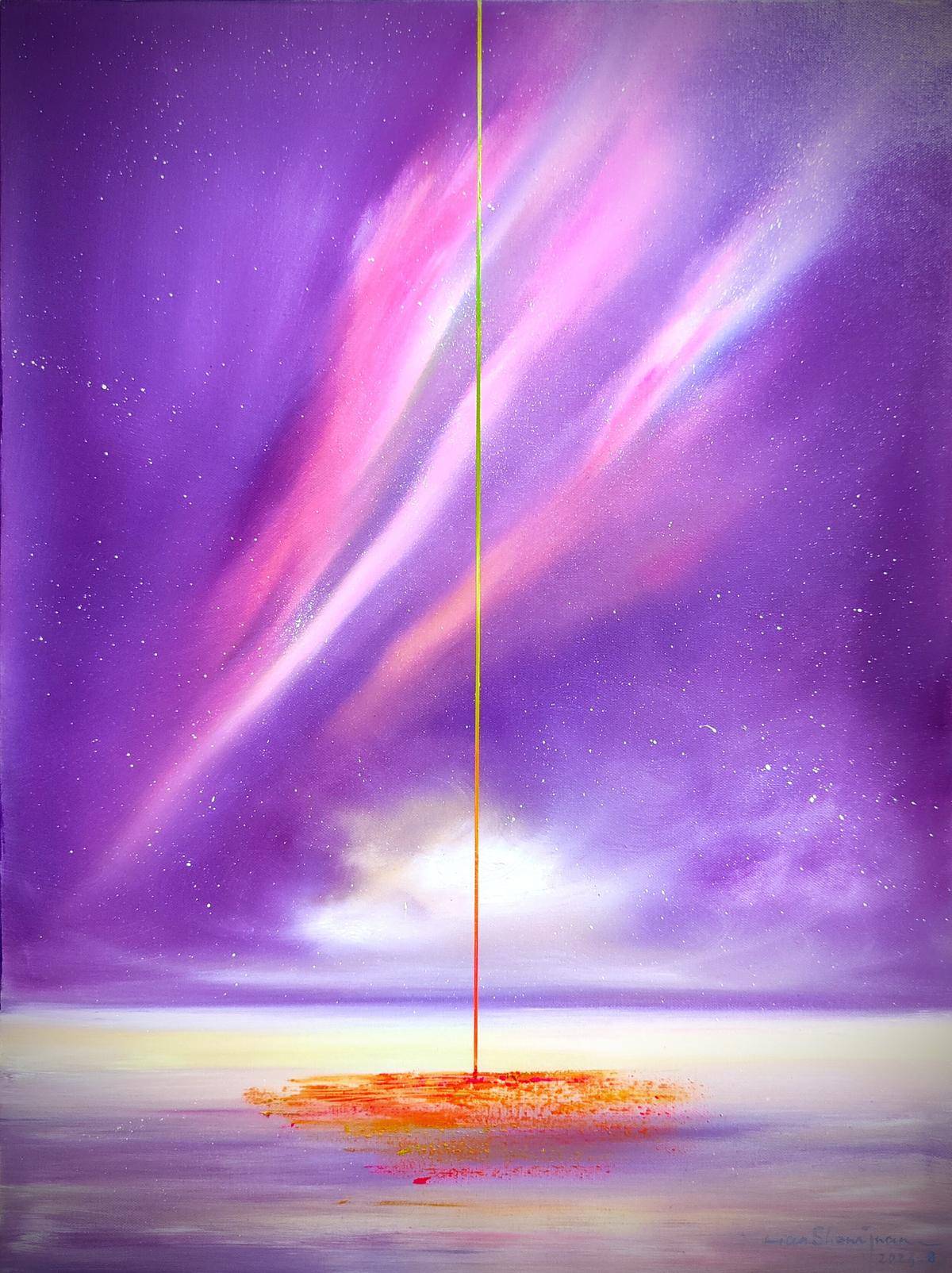 创世纪系列作品是基于进化论系列、似与不似系列及以小见大系列,画面中一道光或一个元素,可视为希望、能量、时间、空间、或是某种联系等。