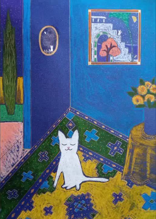 抛去原有的颜色理论知识,继续利用国画笔墨的概念,提升颜色和笔触的音乐性。所以《蓝调猫》并不止画面中的表面意义,更多的是我在用颜色与笔触探索音乐性,希望这一点有赏心者能看出来,那我会很开心,因为在这方面我花了很多力气。