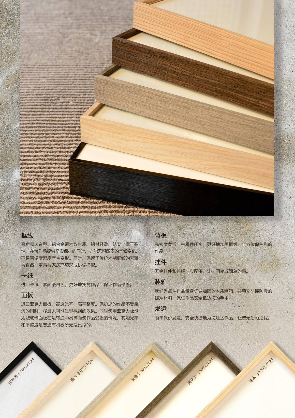 Artand - 艺术收藏风向标在“Artand”App中打开打开造物志•格物•螺 No.001国画 / 23×38cm(装裱后40×56cm) / 20182019年3月21日发表63,135浏览136个赞¥2,699邮费包邮(仅限大陆地区,港澳台及海外地区双方可协商邮费问题)销售方卖家自营支持 7 天无理由退货有托裱有装裱(外框)有收藏证书可开发票(普)作品描述释文:无。钤印:鸣。画芯尺寸:38×23cm装框后尺寸:56×40cm材质:纸本水墨藏家悉知:图示装裱配框为虚拟图,具体画框请参阅尾图。装裱配框为铝合金覆木纹或拉丝画框、背板、亚克力镜面,附赠悬挂配件,缓冲飞机盒包装,顺丰保价发运,不排除存在显示器差异造成的色差,请以实物为准。敬告:本作品所有图版及场景图均受知识产权保护,未经授权的商业使用及基于经济利益的再创作,均为侵权行为,本人保留追究其法律责任的权利。(如果只是喜欢,收藏图片、当屏保、发社交账号等非赢利性行为不在此列。)君子有耻,尊重创作者,为这世界有更多的美好。#国画 #抽象 #水墨 #当代标签 国画抽象水墨当代李百鸣776件作品8477粉丝精选评论(0)还没有精选评论噢,是时候发表下看法了1363评论 我想要 基础保障不支持 7 天无理由退货拍卖与闪购鉴于作品的特殊性,不支持7 天无理由退货。 一口价作品由艺术家出售时自行勾选,买家诸如不喜欢、不 满意或不合适等非质量问题,不支持 7天无理由退货。有装裱(外框)艺术家会为您购买的作品赠送外框装裱,如需 了解具体细节请在购买前与艺术家私信确认。有装裱(外框)在您购买作品并完成评价后,系统会在【订单 详情页面】为您提供电子收藏证书,版面符合 A4尺寸,如有纸质版需要,您也可以自行直接 打印。发票选项与艺术家协商开票事宜。我知道了