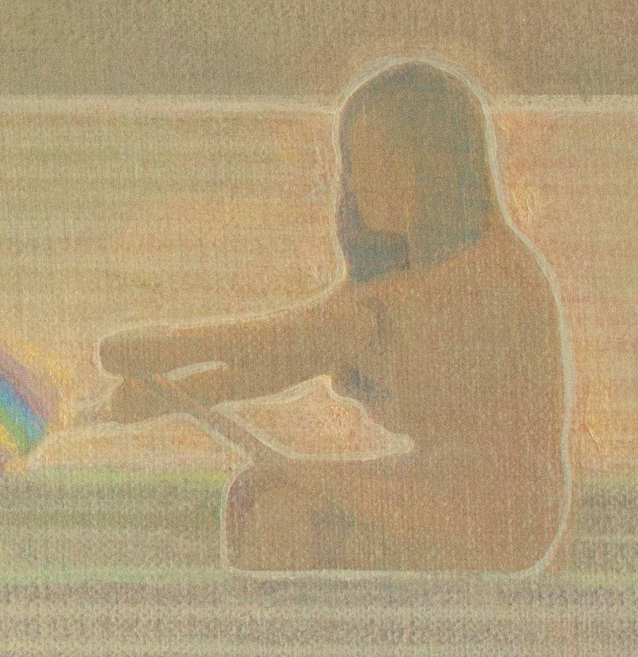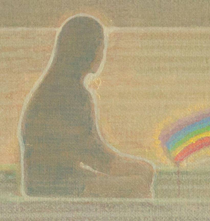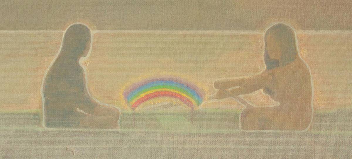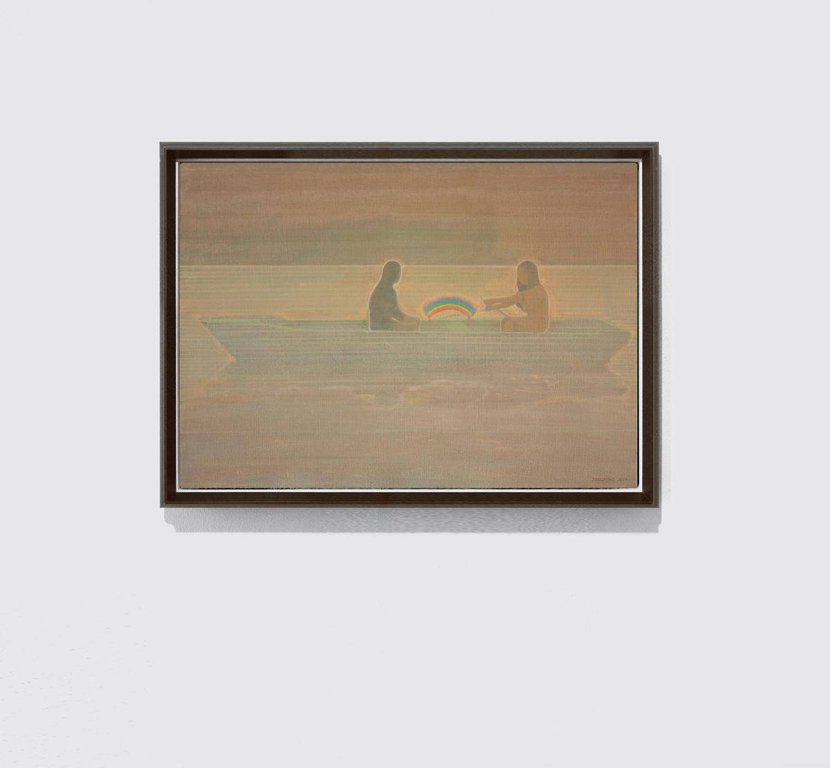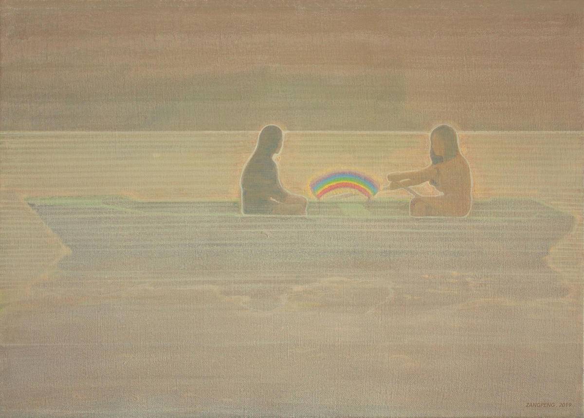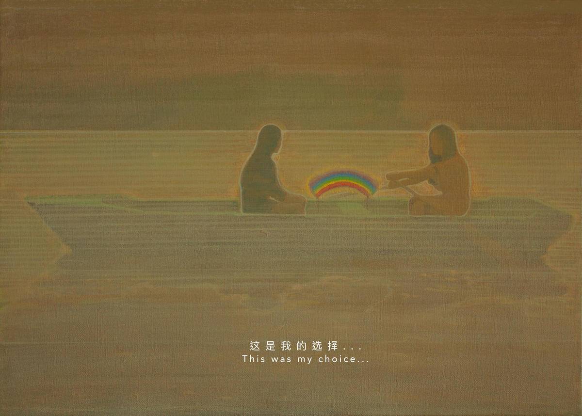 两个女孩在颐和园划船的情景,对于去过颐和园的人来说,都会有这样的一种模糊的情景记忆存储在自己的回忆里,时而变清晰。乘舟游玩,置身于湖面中央,会感觉与尘世繁琐短暂的隔绝,内心与湖面变得一样平静。舟承载的是一个美好且平静的心灵世界,它是灰暗现实里封存的一抹彩虹…