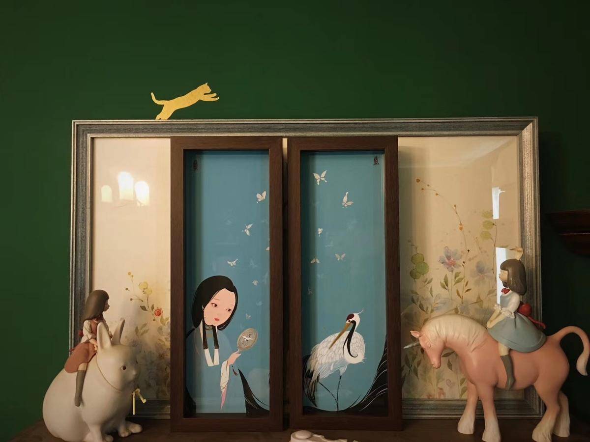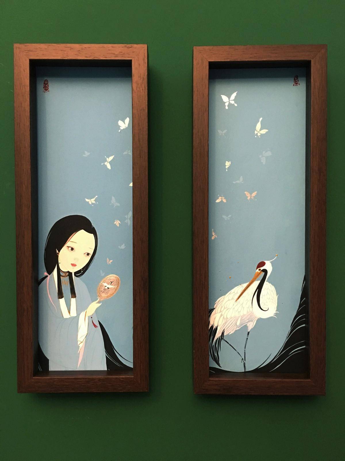 两条屏,两张组画。分别装裱。画面尺寸(38x13)x2/cm